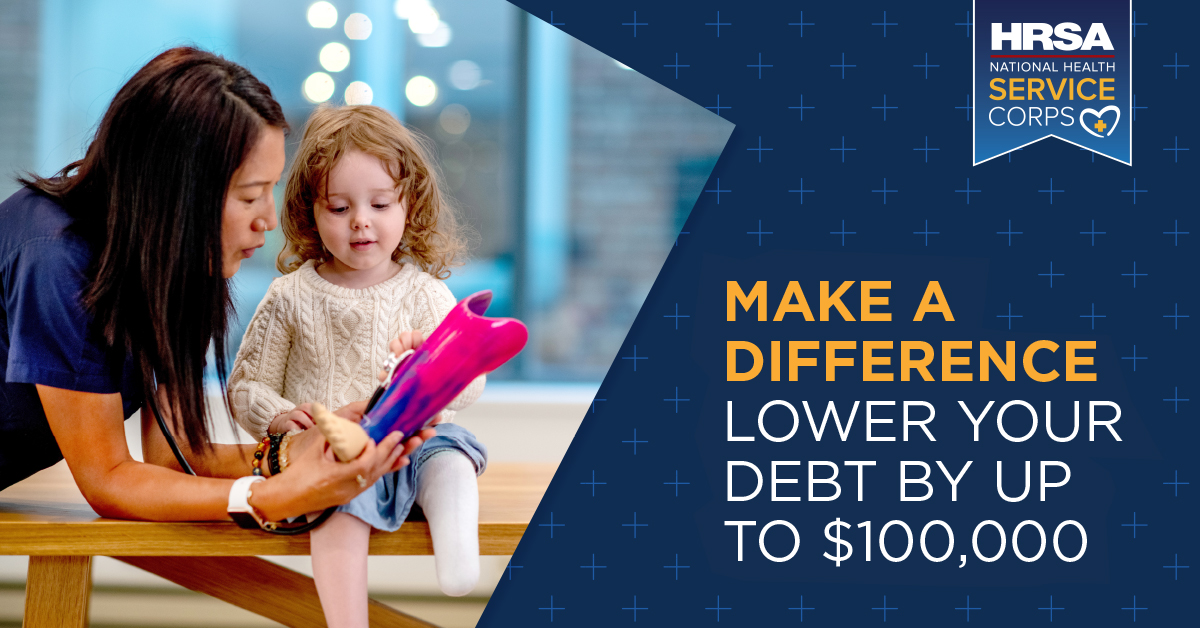 Cut your student debt with the National Health Service Corps (NHSC) Loan Repayment Programs. The programs give you a direct path to pay down what you owe in return for delivering primary care to communities in need. Whether you support rural families, give maternal health care, provide behavioral health services, or help individuals recover from substance use; service through the NHSC directly expands access to care, while giving you meaningful financial relief. Apply today.
